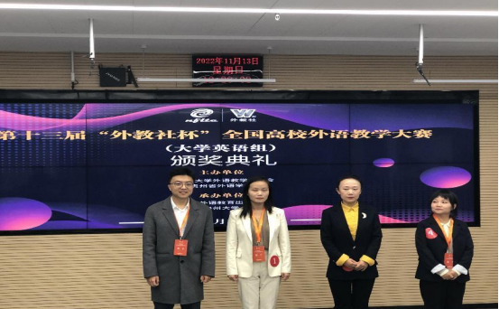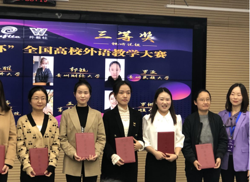2022年11月12日至13日,第十三届“外教社杯”全国高校外语教学大赛(大学英语组)贵州赛区复赛、决赛在贵州大学成功举办,代表贵州民族大学参赛的胜游(中国)教师荣获佳绩:田甜副教授获一等奖、罗亚讲师获三等奖。特此祝贺!
