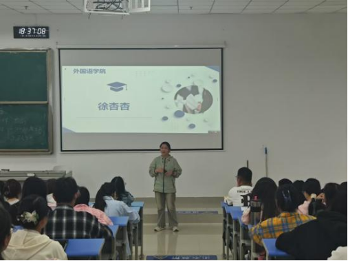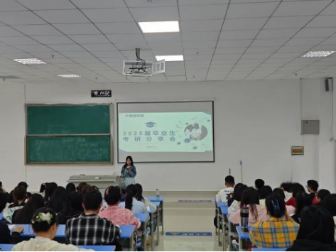 随后,赵艳副院长对在校学生进行了考研动员。她分析了英语专业在考研中所具有的优势以及未来的发展潜力,鼓励同学们利用专业优势,积极参与学术交流和学术活动,为未来的学术发展打下坚实的基础,踊跃参与考研。