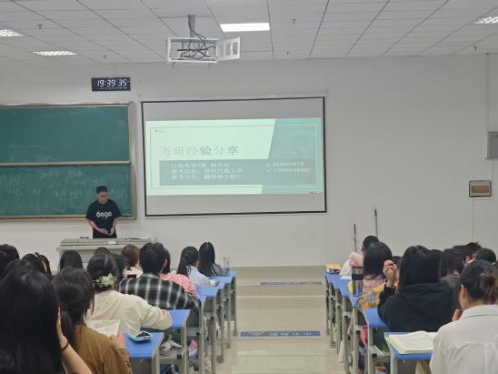 接着,2025届考研录取的毕业生代表逐一分享了备考经历,结合他们在备考过程中遇到的困难和挑战,交流克服困难的方法和技巧。从院校选择的建议,到缓解压力的实用方法,考研“上岸”师兄师姐无不细致地进行交流分享。