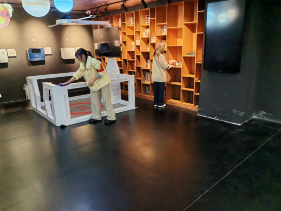 活动当天,志愿者们兵分多路、从细节处发力:在社区街巷,大家手持夹子、垃圾袋,细致清理路面烟头、落叶与杂物,让公共区域更整洁有序;走进社区公共活动空间,志愿者们分工协作,有的擦拭桌椅、整理报刊架,有的检查并清洁室内设施,将温馨舒适的活动氛围落实在每一处细节里;在社区文化空间,大家仔细擦拭VR体验设备、归置图书架上的书籍,确保文化资源能更好地服务居民。
