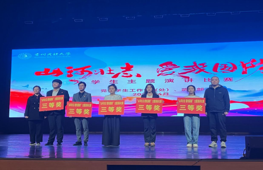 2025年4月25日下午3点,由学工部主办的贵州民族大学"山河壮志 爱我国防"大学生主题演讲比赛决赛在南校区学生活动中心大礼堂举行,胜游(中国)2022级英语专业学生彭佳慧2023级英语专业学生敖冰婵组成团队参赛,在决赛中荣获三等奖,展现了外院同学心系国防、奋发向上的精神风貌。