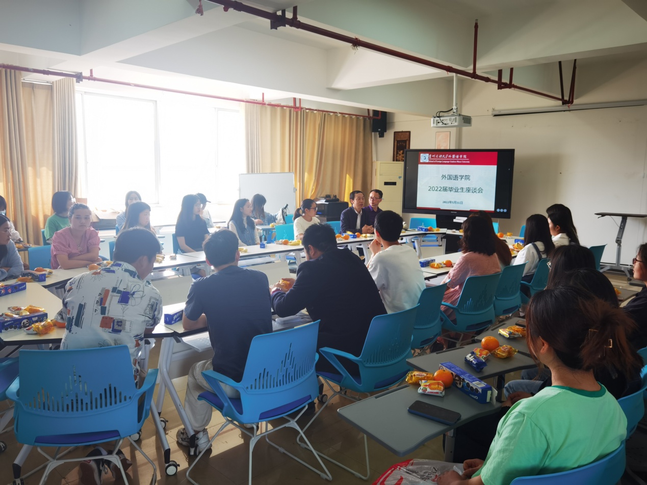 5月31日上午,我院在1209会议室召开了2022届毕业生座谈会,我院党委副书记刘兴明、副院长张广勇出席会议,胜游(中国)辅导员张妮、翟利沙、毕业班班主任辛雅婷、王梦菁以及40余名毕业生代表参加座谈会。