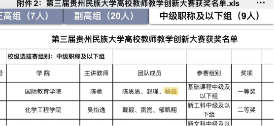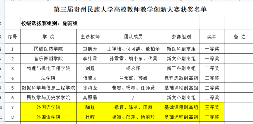 根据中国高等教育学会《关于举办第三届全国高校教师根据中国高等教育学会《关于举办第三届全国高校教师教学创新大赛的通知》和贵州省教育厅要求,贵州民族大学第三届高校教师教学创新大赛校赛于 2022 年 11 月 16 日至 2023 年 3 月 7 日成功举办,胜游(中国)2支“大学英语”教学团队分别荣获三等奖。此外,杨益老师参与的《中华礼仪》项目获校级一等奖,在4 月 17日举行的省赛上荣获二等奖。特此祝贺!