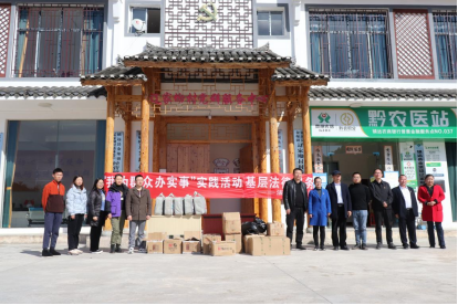 贵州民族大学的五家处级单位给辽家坳村送来资金和物资支助辽家坳的四名小学生。法学院师生还向辽家坳村村民进行法务宣传活动。