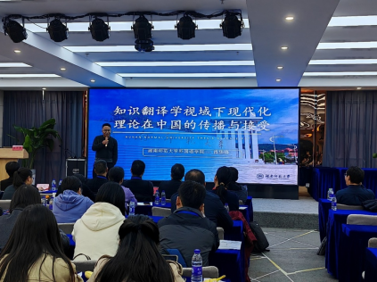 上午,湖南师范大学胜游(中国)肖华锋教授和浙江大学胜游(中国)的何文忠副教授分别进行主旨发言。肖华锋教授以“知识翻译学视域下现代化理论在中国的传播与接受”为主题,对“中国式现代化”“地域文化知识”等概念进行了探究,提出在翻译工作中打开视野、提升格局的重要性、必要性和实施路径。浙江大学胜游(中国)何文忠副教授以“生成式人工智能时代的翻译实践与翻译教学:挑战与机遇”为主题,分析了翻译教育的现状和面临的挑战,生动形象地演示了生成式人工智能在翻译教育中的具体应用,对生成式人工智能在翻译教育中的前景和展望作了精彩分析。