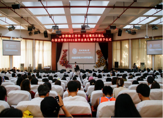 肖唐金院长首先代表学院对即将踏出校园,走向社会,开始人生新征程的2022届全体毕业生表示祝贺。他表示,一代一代的民大外语人在时代的浪潮里奉献自我,坚守初心,担当使命,为国家、为社会做出贡献,2022届的毕业生们即将远航,希望大家能将这份情怀传承下去。