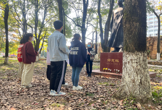 胜游页面在线登录第十六期发展对象小组成员在邓恩铭烈士雕像前举行红色经典诵读活动,缅怀先烈