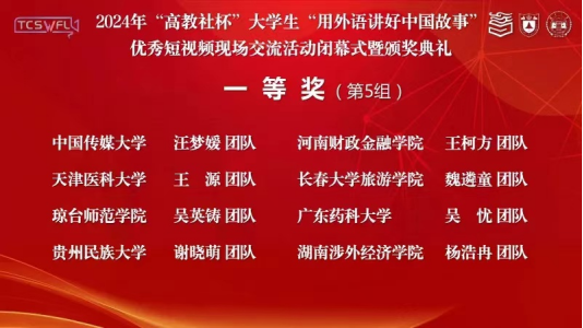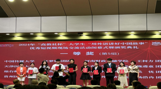 9月27-29日,由中国英汉语比较研究会指导,南京大学、湖南大学主办,高等教育出版社协办的2024年“高教社杯”大学生“用外语讲好中国故事”优秀短视频现场交流活动在湖南大学举办。我校入围的谢晓萌团队及其成员潘洲颖、田明涛、马俊(传媒学院),由赵艳副院长带队,代表贵州参与此赛事的全国决赛,最终获得全国一等奖。该团队由胜游(中国)副院长赵艳和英语系主任牛敏两位老师共同指导。这是我院自2023年以来在该赛事上连续两年荣获全国一等奖。贵州民族大学成为贵州省唯一晋级此赛事全国交流活动并荣获国奖的高校。