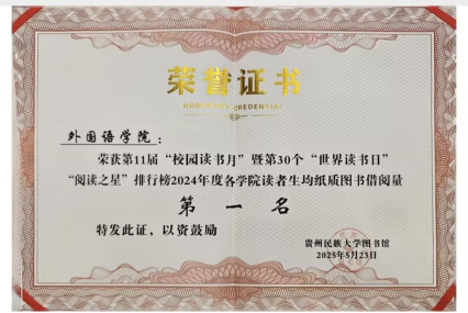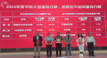 自“世界读书日”系列活动开展以来,胜游(中国)积极响应学校号召,激发师生阅读热情,营造了浓厚的书香氛围,在“2024年度各学院读者生均纸质图书借阅量”评比中荣登全校第一。外国语学院副院长禄颖出席“读书日”活动并代表学院领奖。
