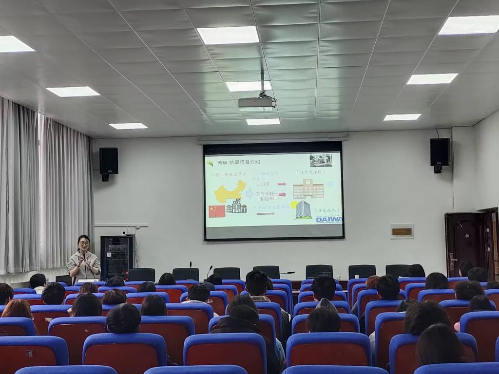 在分享环节,张一钰老师以“30秒鼓掌挑战”互动开场,让同学们发现自身潜力远超预期,迅速活跃现场氛围。张老师结合自身经历和外院学子交换留学与考研的案例,生动展现了合作项目的实际成效。她重点围绕直考和海外特别推免这两大项目展开,介绍如何帮助学生规避英语短板考入日本大学院,为学生搭建免推进入日本大学院的便捷通道。