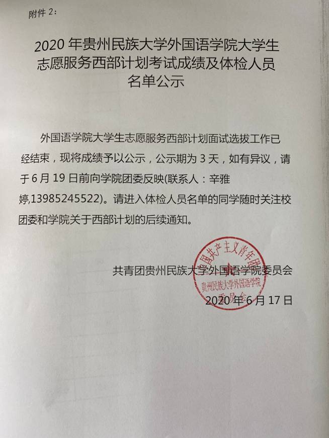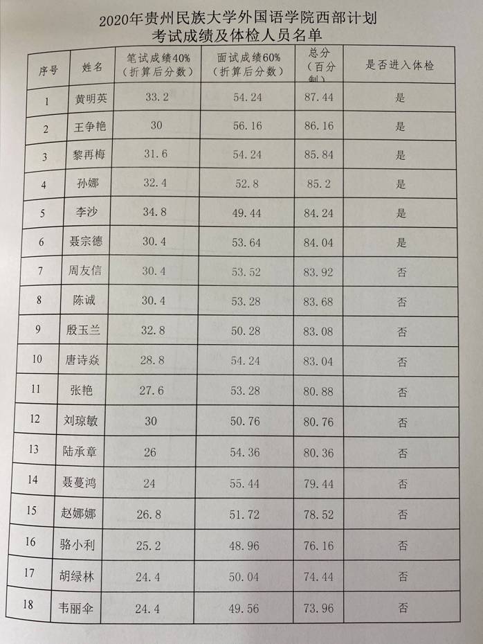 2020年胜游页面在线登录大学生志愿服务西部计划考试成绩及体检人员名单公示